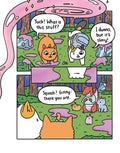 In this third snack-fueled adventure, the cats high-tail it back to the spirit realm to investigate a magical mystery: The Dragon Witch’s magical artifact collection has gone missing, and the whole forest is covered in mysterious slime! Squash and Ginny follow clues to places old and new, like Mewmaid Ocean, Bum Bum Bog, and eventually to a secret tunnel that leads beneath Unibear City, the hub of the spirit realm.