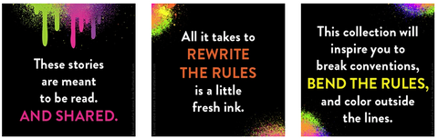 All it takes to rewrite the rules is a little fresh ink in this remarkable YA collection from thirteen of the most recognizable diverse authors writing today including Nicola Yoon, Jason Reynolds, Melissa de la Cruz, and many more, and published in partnership with We Need Diverse Books.