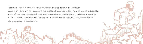 Strange Fruit Volume I is a collection of stories from early African American history that represent the oddity of success in the face of great adversity. Each of the nine illustrated chapters chronicles an uncelebrated African American hero or event. From the adventures of lawman Bass Reeves, to Henry “Box” Brown’s daring escape from slavery.